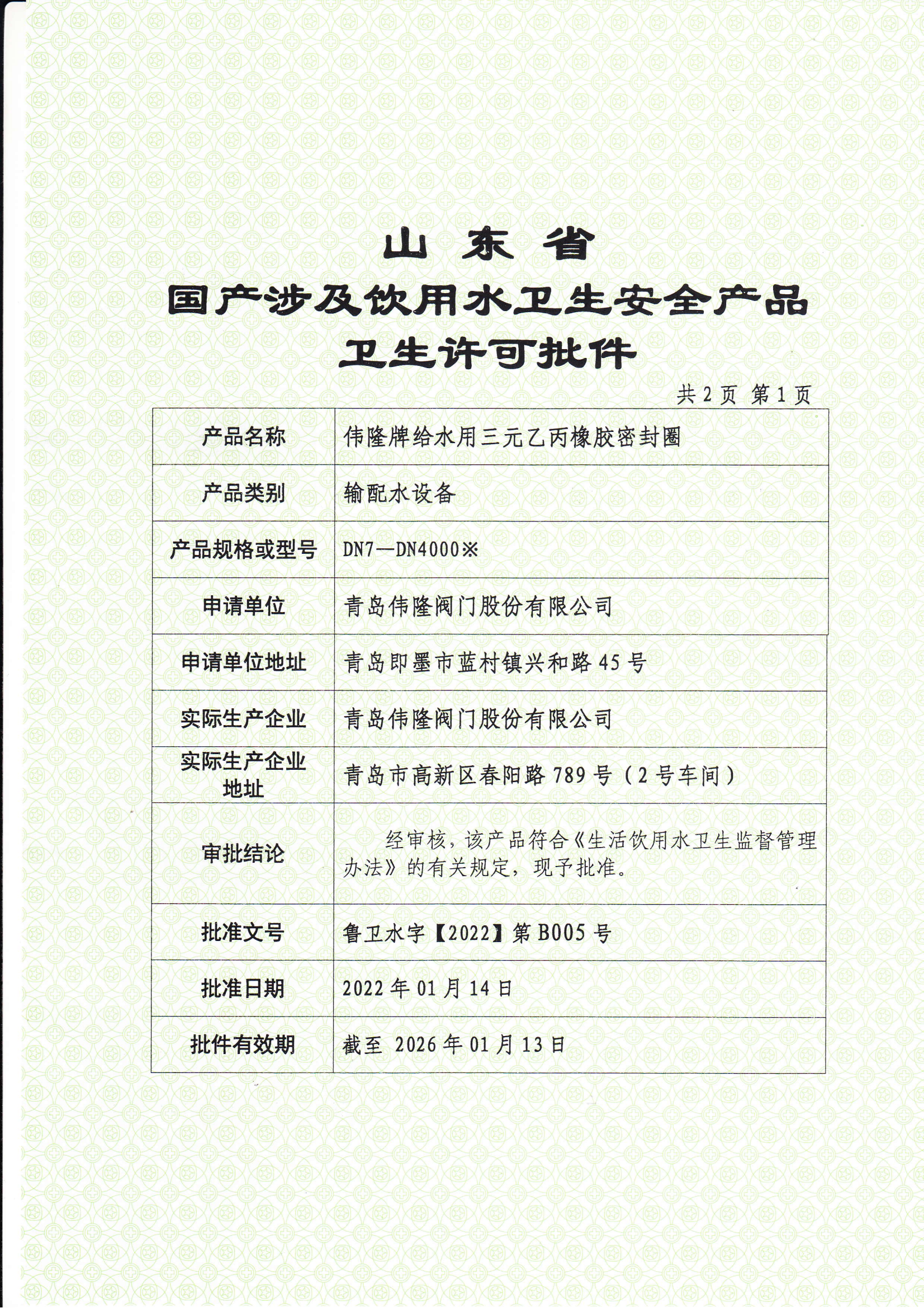 卫生许可批件