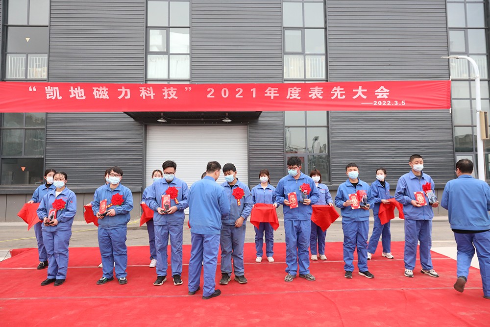 2022年3月5日下午,公司在新厂房前举行了2021年度表先会,疫情虽然没有消散,表彰氛围却依然热烈。